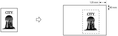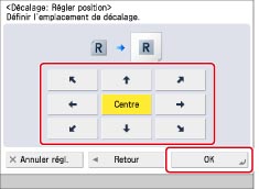Si [Par clavier numérique] est sélectionné, le contour de l'image de l'original risque d'être légèrement tronqué sur la copie. Le niveau de troncature dépend du format de l'original, du format de la copie et de la distance de décalage spécifiée.