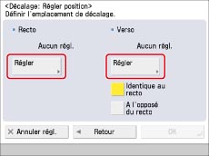 - .Les valeurs pour le verso peuvent être réglées automatiquement en sélectionnant [Identique au recto] ou [A l'opposé du recto].