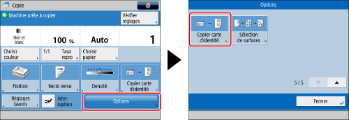 Placer la carte d'identité sur la vitre d'exposition. Le mode Copier carte d'identité ne peut pas être utilisé lorsque la carte d'identité est placée dans le chargeur.