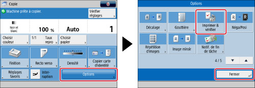 Placer l'original sur la vitre d'exposition. Le mode [Imprimer & vérifier] ne peut pas être défini lorsque les originaux sont placés dans le chargeur.