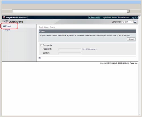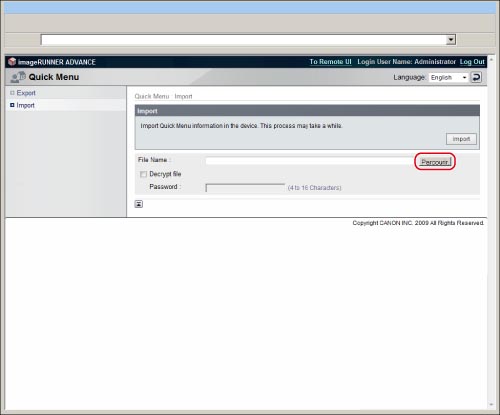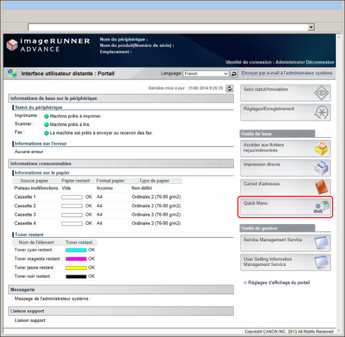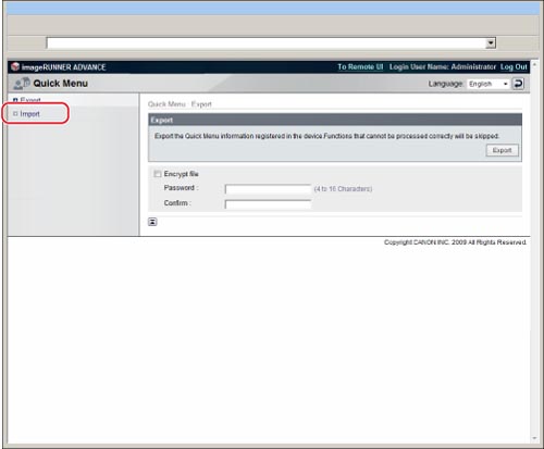 Il est possible d'utiliser les fichiers importés du bouton personnel/commun parmi les mêmes modèles (imageRUNNER ADVANCE C3330i/C3325i/C3320/C3320i). Il se peut toutefois que certains des boutons importés ne puissent pas être utilisés selon les différents périphériques en option et l'environnement d'utilisation.