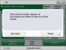 Pour plus d'informations sur l'annulation d'une tâche d'envoi, voir "Annulation d'une tâche".