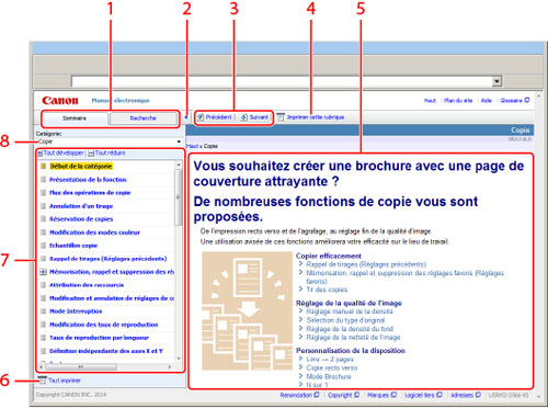 Il se peut que le fond de couleur et les images des rubriques ne s'impriment pas, suivant les paramètres du navigateur Web.