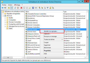 Sélectionner par un clic droit le compte utilisateur à ajouter au groupe "Canon Peripheral Admins".