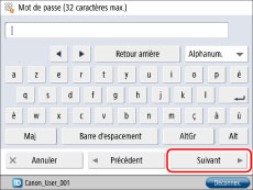 Saisir un mot de passe → appuyer sur [Suivant].