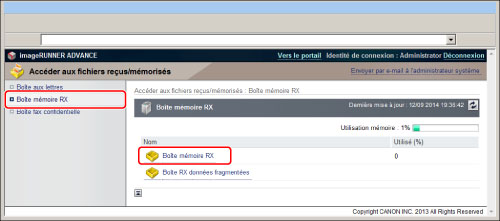 Cliquer sur [Accéder aux fichiers reçus/mémorisés] → [Boîte mémoire RX] → [Boîte mémoire RX].