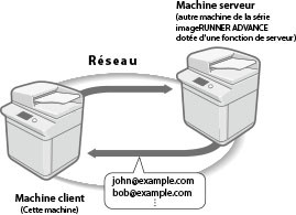 La machine peut accéder, en tant que machine cliente, à une machine serveur sur le réseau pour rechercher/spécifier les destinataires depuis le carnet d'adresses de la machine serveur.