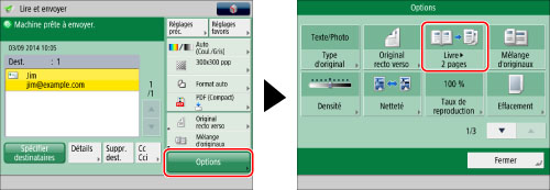 Spécifier le destinataire → appuyer sur [Options] → [Livre