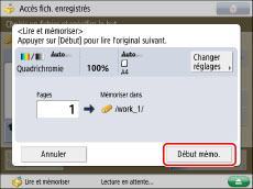 Si l'écran suivant s'affiche après la lecture du dernier lot d'originaux, appuyer sur [Début mémo.].