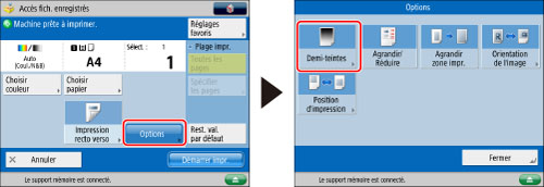 Ce mode est uniquement disponible pour imprimer les fichiers mémorisés dans l'espace avancé d'une autre machine imageRUNNER ADVANCE du réseau ou du support mémoire.