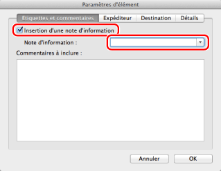 Si l'on souhaite ajouter une note d'informations, sélectionner [Insertion d'une note d'information] → sélectionner une note.