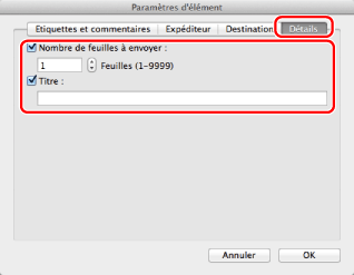 Si vous voulez indiquer le nombre de pages ou un titre, cliquez sur [Détails] → élément voulu et saisissez le contenu.