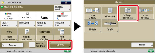La sélection du mode Mélange d'originaux peut avoir pour effet de ralentir la lecture.