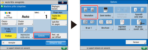 Ce mode est uniquement disponible pour imprimer les fichiers mémorisés dans l'espace avancé d'une autre machine imageRUNNER ADVANCE du réseau ou du support mémoire.