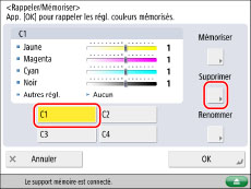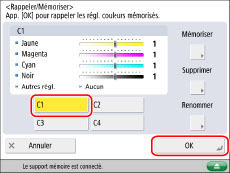 Sélectionner une touche (de [C1] à [C4]) pour mémoriser les réglages de la balance des couleurs → appuyer sur [Mémoriser].