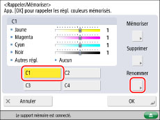 Sélectionner la touche (de [C1] à [C4]) à nommer → appuyer sur [Renommer].