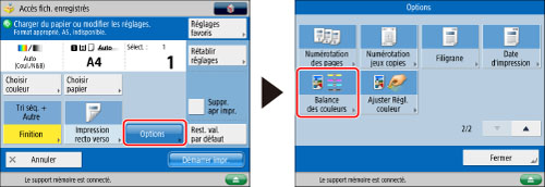 Appuyer sur [Options] → [Balance des couleurs].