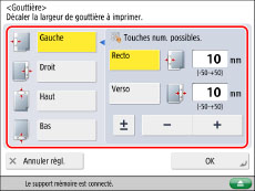 Pour imprimer un fichier comportant déjà une gouttière en utilisant les modes Gouttière et Impression recto verso, régler le mode Gouttière pour le verso uniquement.