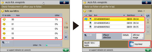 Ce mode ne peut être utilisé que pour l'impression d'un fichier mémorisé dans une boîte aux lettres.