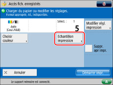 [Echantillon impression] ne s'affiche que si l'on programme plusieurs impressions de l'original avec [Tri séq. (Ordre pgs)], [Décalage], [Rotation de 90 degrés], [Agrafage] ou [Brochure].