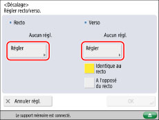 - .Les valeurs pour le verso peuvent être réglées automatiquement en sélectionnant [Identique au recto] ou [A l'opposé du recto].