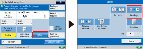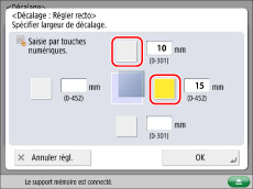 En mode Décalage, le contour de l'image de l'original risque d'être légèrement tronqué sur l'impression selon le format du fichier sélectionné, le format du papier d'impression et la distance de décalage spécifiée.