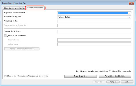 Sélectionner [Numéro de fax] pour [Numéro de fax/URI].