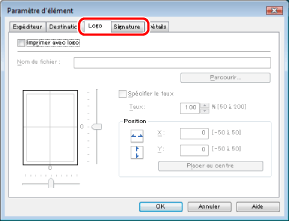Cliquer sur [Parcourir] → sélectionner le taux de reproduction et l'emplacement de la signature ou du logo sélectionné.