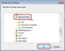 Sélectionner le dossier d'enregistrement du carnet d'adresses → cliquer sur [OK].