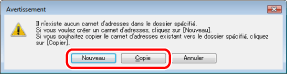 Si l'on souhaite créer un carnet d'adresses, cliquer sur [Nouveau]. Si l'on souhaite copier le carnet existant dans le dossier indiqué, cliquer sur [Copie].