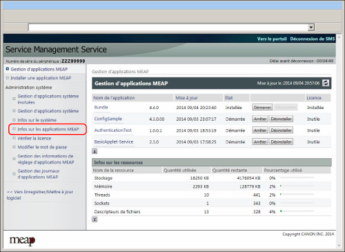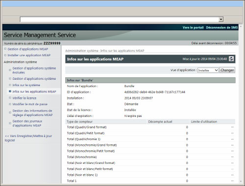 Sélectionner [Installée] dans la liste déroulante pour vérifier les données relatives aux applications installées (à l'exception des applications système).