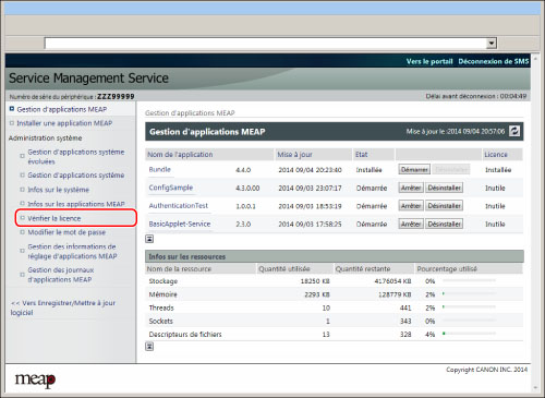 Il est impossible d'afficher le contenu des fichiers de licence installés.