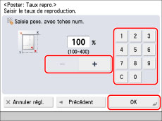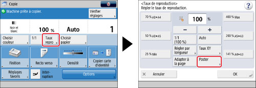 Pour annuler ce réglage, appuyer sur [Taux repro] → [Poster] → [Annuler].