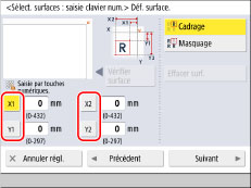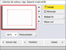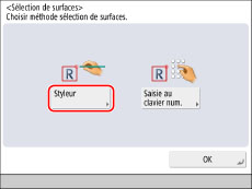 Lors de la sélection d'une surface avec le styleur, l'image de sortie peut ne pas être exactement la zone sélectionnée. Si c'est le cas, saisir les valeurs avec les touches numériques.