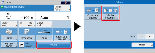 Les documents ne peuvent être ni copiés ni lus en mode Sélection de surfaces si les originaux se trouvent dans le chargeur.