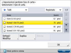 Quando si registrano le impostazioni per il tipo di carta personalizzato, accertarsi di modificarne il nome. Non è possibile modificare le impostazioni dei tipi di carta predefeniti registrati nella macchina.