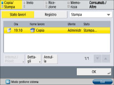 Se si imposta [Copia/Stampa], [Stato lavori], [Stampa] come Schermata predefinita (Monitoraggio stato/Annulla):