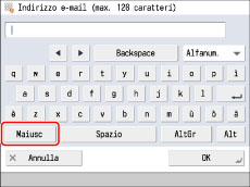 Premendo [Maiusc] sulla schermata con la tastiera, il successivo carattere immesso sarà maiuscolo. [Maiusc] viene rilasciato ogni volta che viene immesso un carattere, e i caratteri successivi saranno minuscoli.