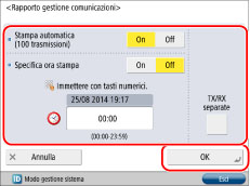 Per maggiori informazioni sul Rapporto gestione comunicazioni, vedere "TX/RX RAPPORTO GESTIONE COMUNICAZIONI".