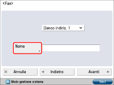 Il numero di fax immesso viene memorizzato nell'elenco indirizzi selezionato.