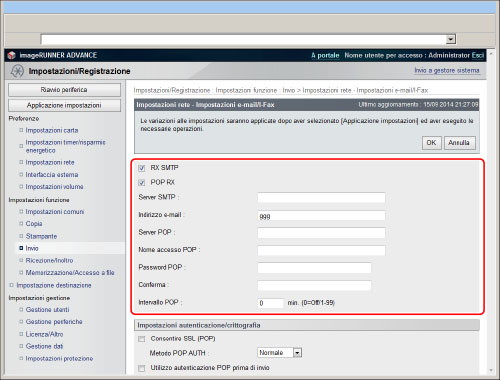 (questa operazione si riferisce all'intervallo in cui la macchina imageRUNNER ADVANCE si collega al server di posta per controllare le e-mail). |