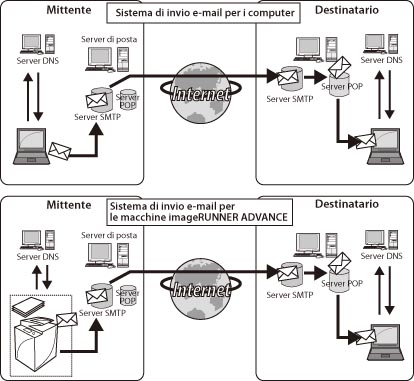 Le macchine imageRUNNER ADVANCE non supportano la ricezione di e-mail.