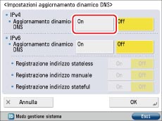 (Impostazioni/Registrazione) → [Preferenze] → [Rete] → [Impostazioni TCP/IP] → [Impostazioni DNS] → [Impostazioni indirizzo server DNS].