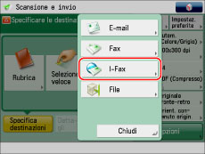 Fare clic su [Impostazioni funzione] → [Invio] → [Impostazioni rete - Impostazioni e-mail/I-Fax].