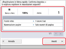 Controllare le impostazioni → selezionare [Avanti].