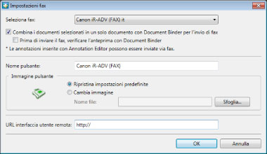È possibile configurare la copertina nella finestra di dialogo [Impostazioni invio fax]. Per ulteriori informazioni, vedere la sezione "Riferimento".