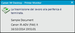 Questa icona viene visualizzata nell'intervallo di tempo tra l'inizio dello spooling eseguito dallo spooler di Windows e il completamento del lavoro di invio fax a imageRUNNER ADVANCE.