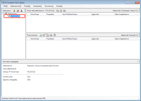 Selezionare il flusso ([Riduzione formato carta e invio]) per l'elenco [Flussi scaricati].
