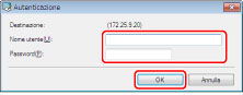 Se viene visualizzata la finestra di dialogo [Autenticazione], immettere l'ID gestore sistema e il PIN sistema in [Nome utente] e [Password] → fare clic su [OK].