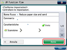 Controllare le impostazioni del flusso → premere [Avvio].